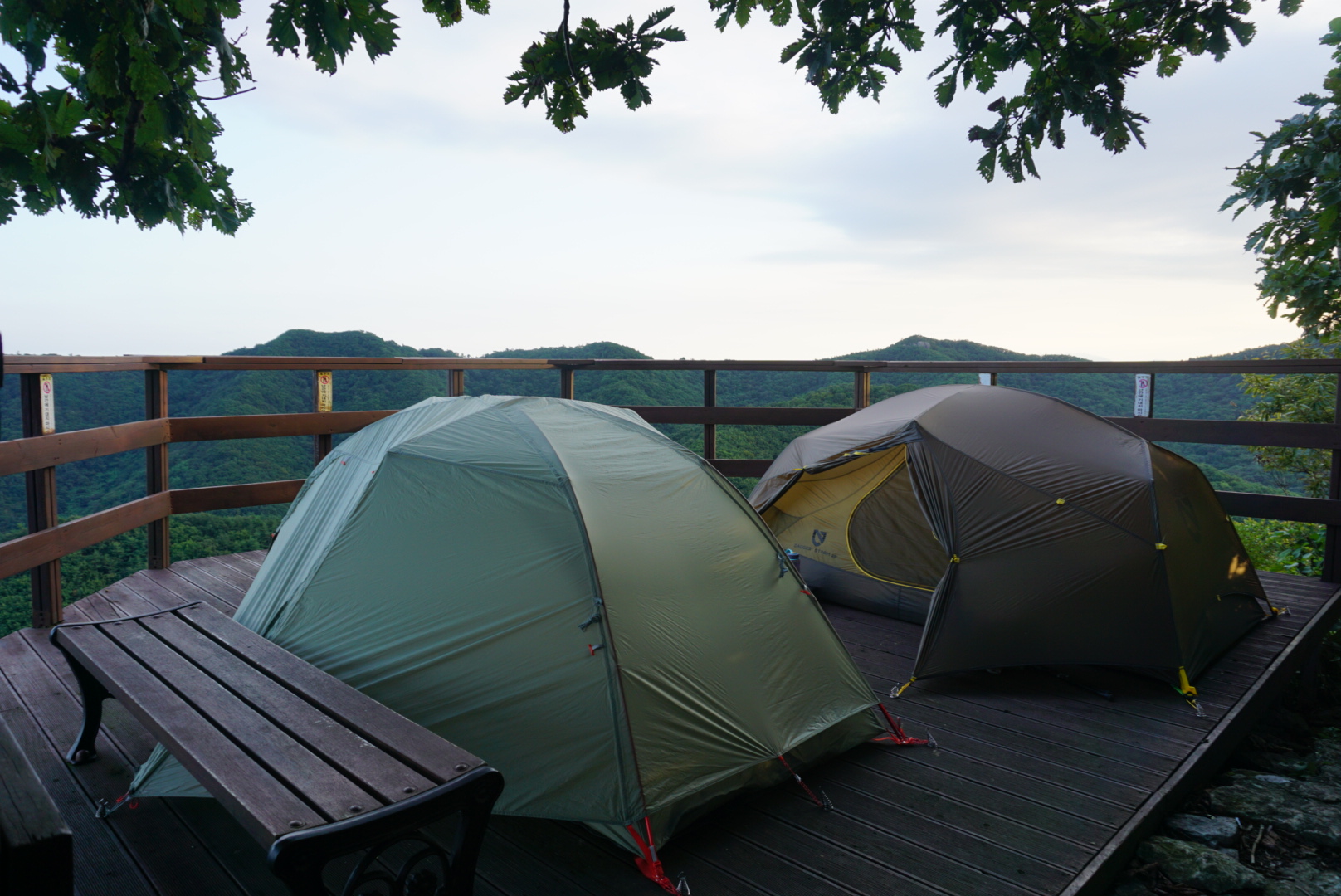 밖으로 나와보니 어느새 촉촉해진 텐트와 데크