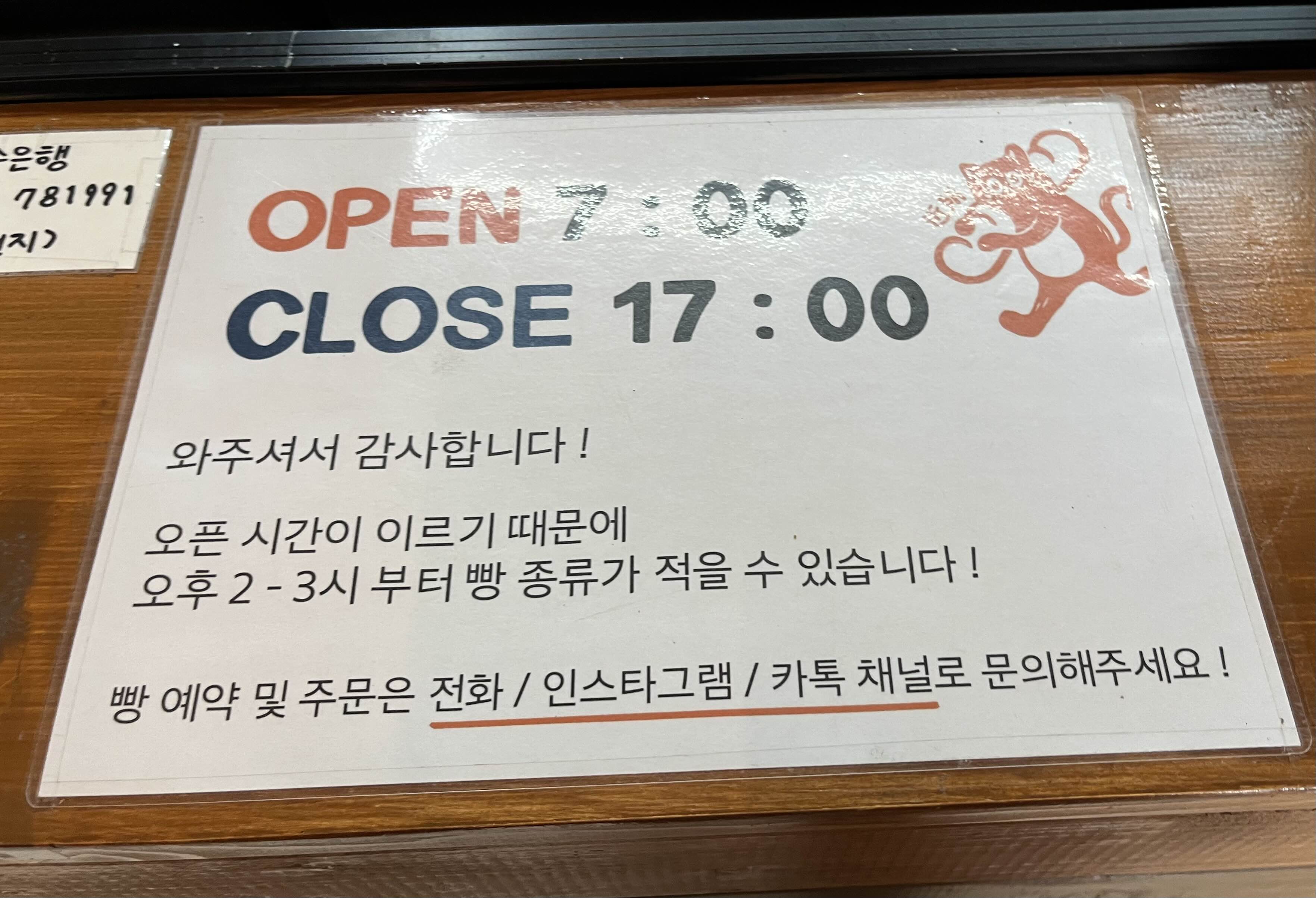 영업시간 07:00 - 17:00